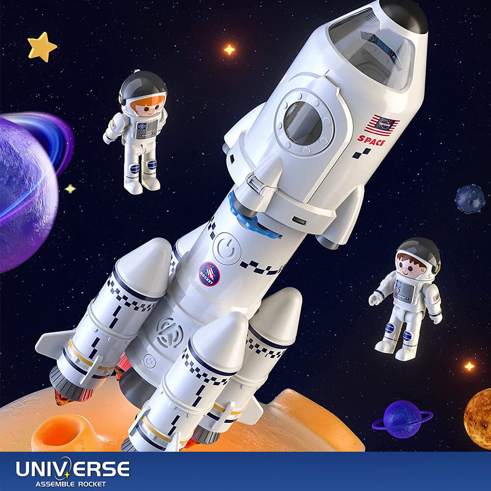 $67.495 IN 1 DETACHABLE ROCKET:The rocket consists of two astronauts, a spaceship, a first-stage rocket, a second-stage rocket and 4 boosters. Detachable assembly. The astronauts are also movable, and kids can role-play on a cosmic adventure! Each capsule can be independent, or it can be an integral rocket. Children can also learn about the structure of rockets as they play.
