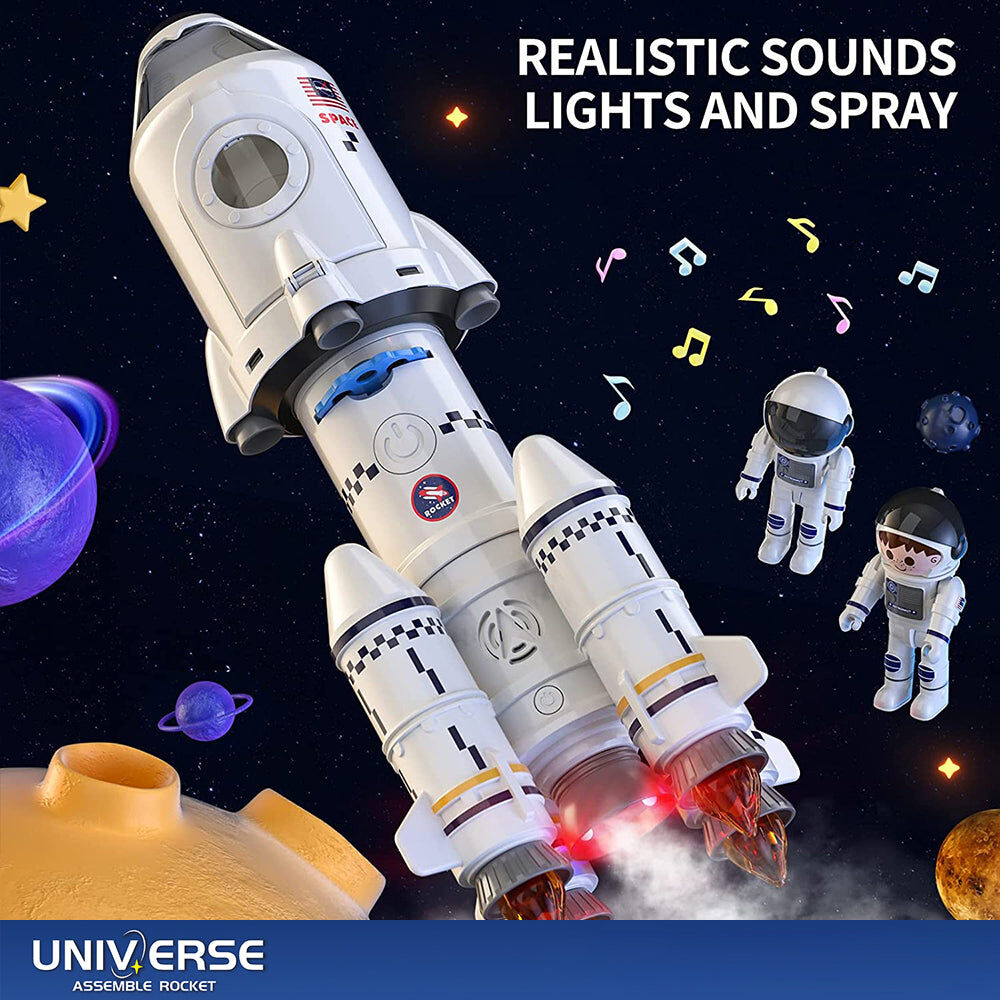 SIMULATE ROCKET LAUNCH:This realistic rocket toy simulates the lights, sounds and smoke of a real rocket launch. Install 3*AAA batteries (not included) on the first-stage rocket, press the switch, and you can hear the exciting sound, which makes people feel immersive. Let the children feel the tension and excitement of the rocket launch.