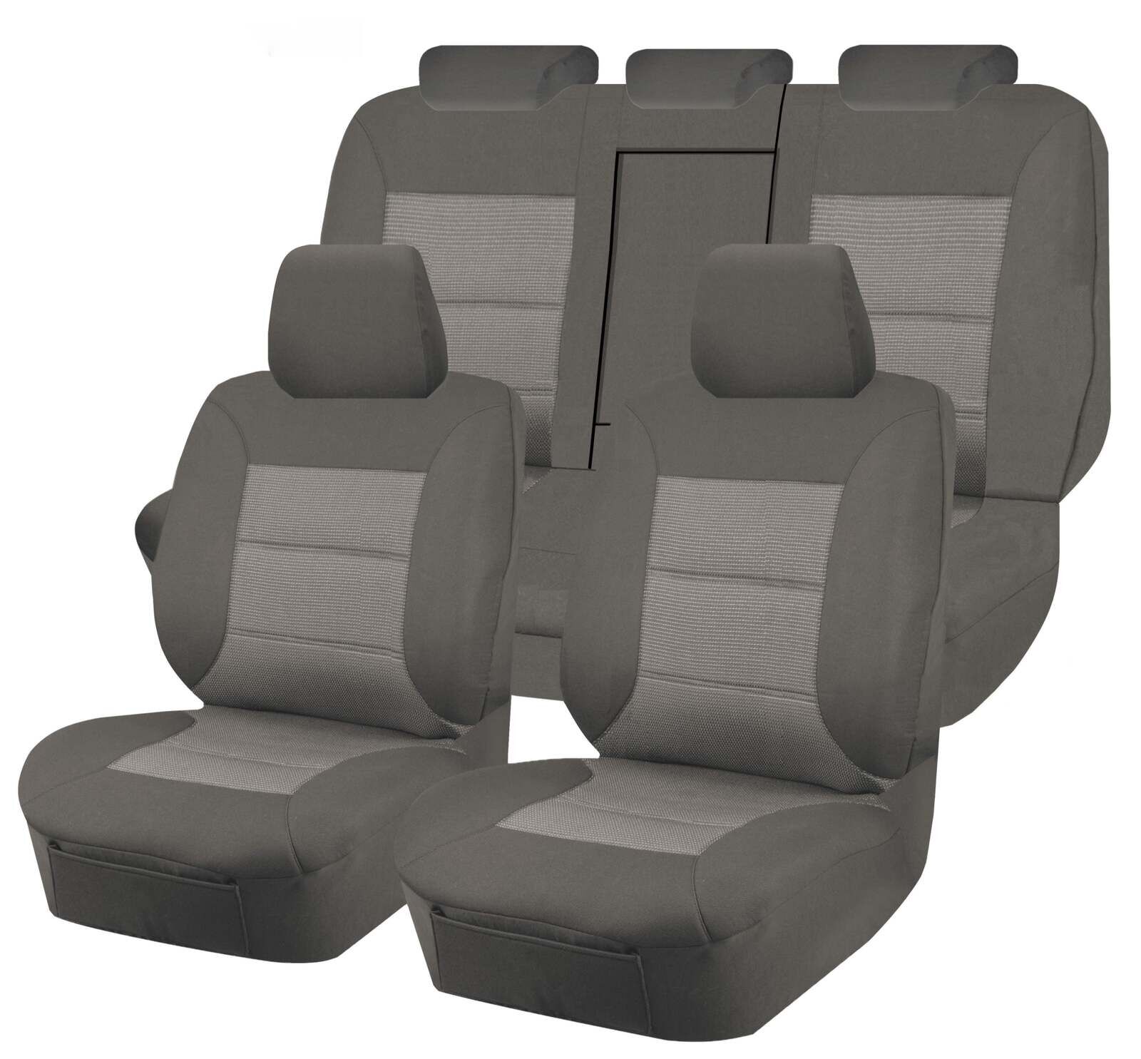 Front and rear seats including headrests and armrest.