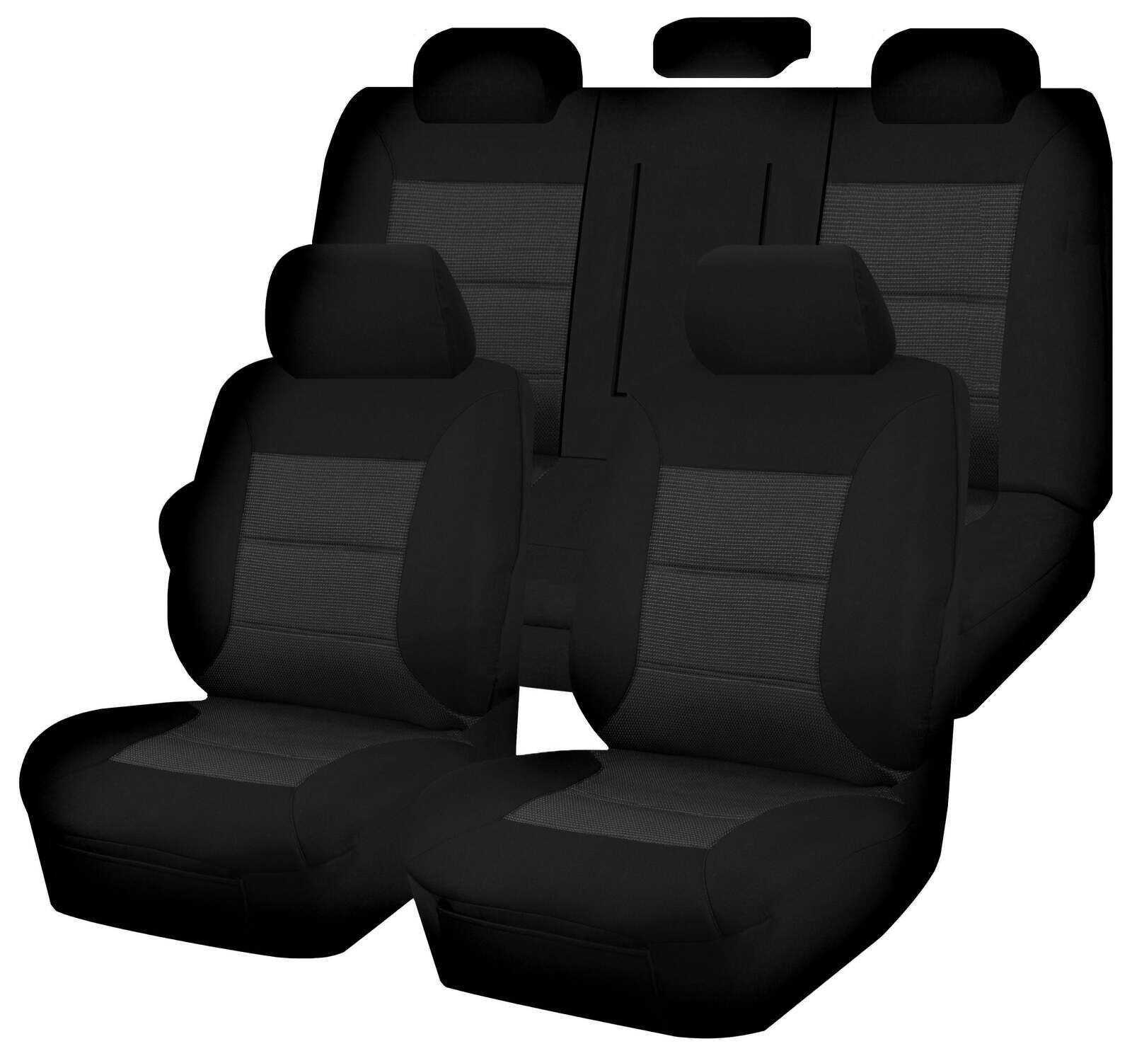 Front and rear seats including headrests and armrests.