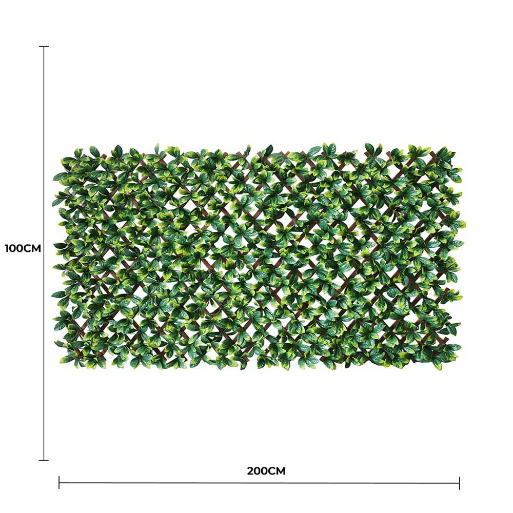 Package Includes: One Premium Laurel Leaf Artificial Hedge Extendable Trellis / Screen 2 Meter by 1 Meter UV Resistant (PVC)