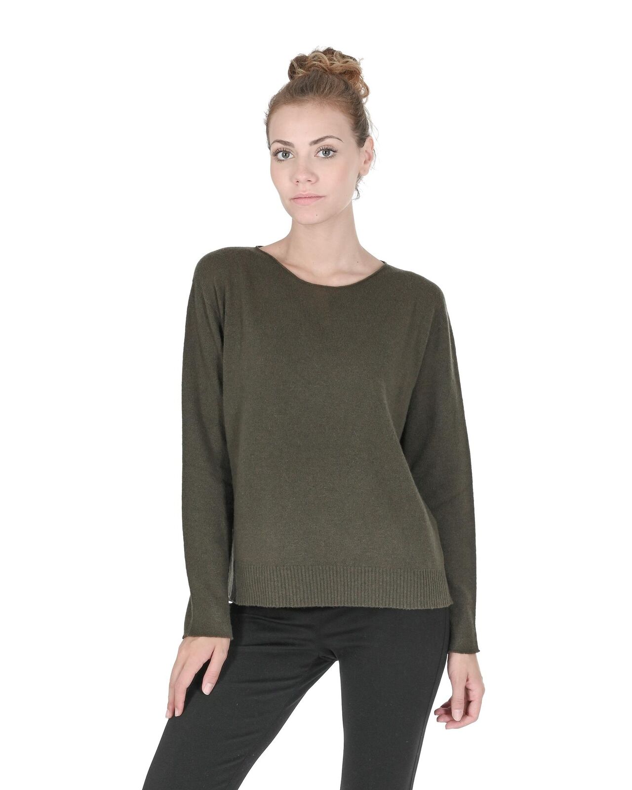 • Premium quality Crown of Edinburgh Cashmere Womens Oversize boatneck Sweater COE 008 Khaki