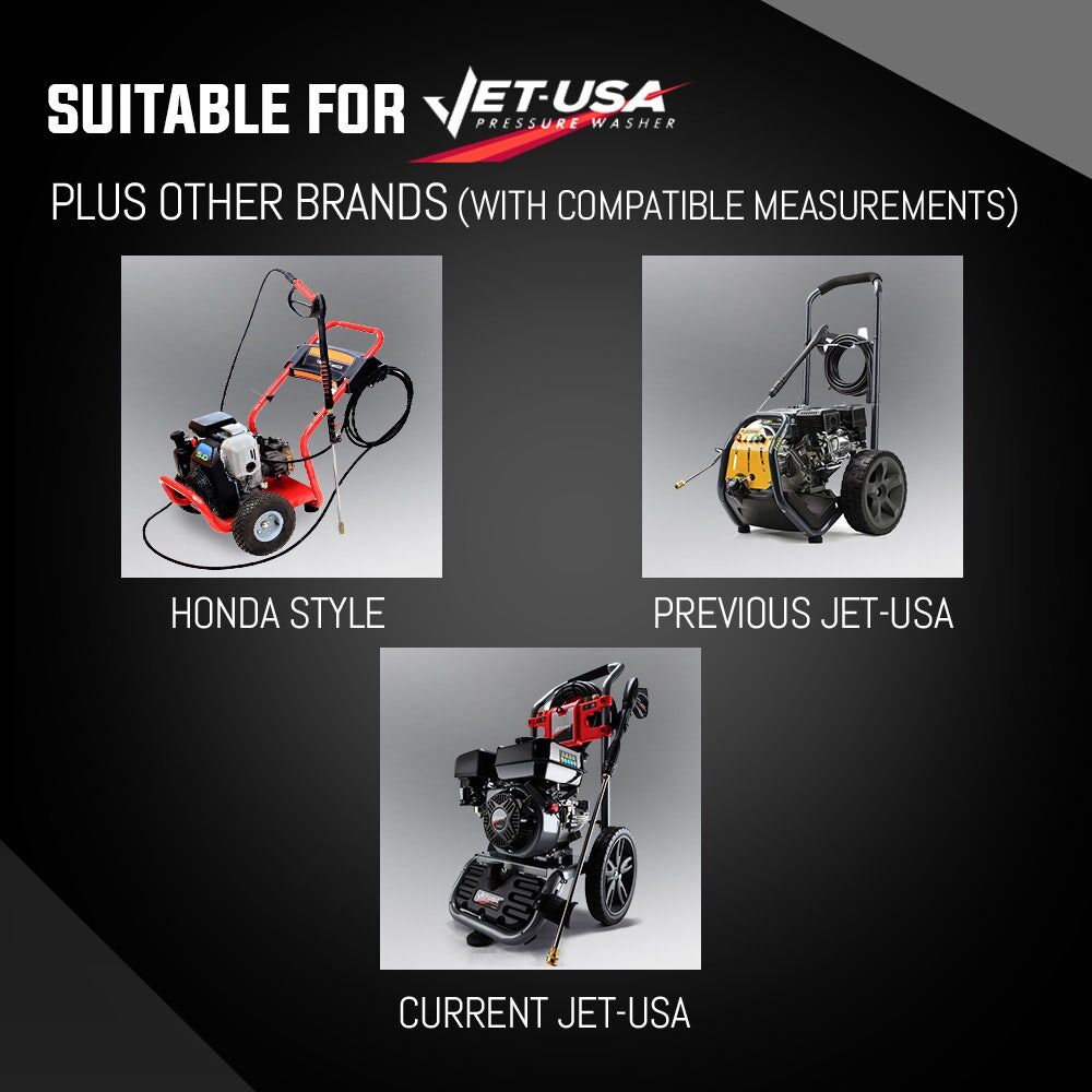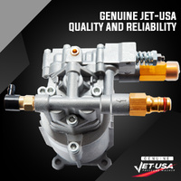 With a forged manifold and an anodised die cast housing, the Jet-USA High Pressure Water Pump has definitely proven its dependability in the field. This premium unit has a detergent inlet and a thermal relief valve and is pre-filled with oil and suits a wide range of pressure washers.
