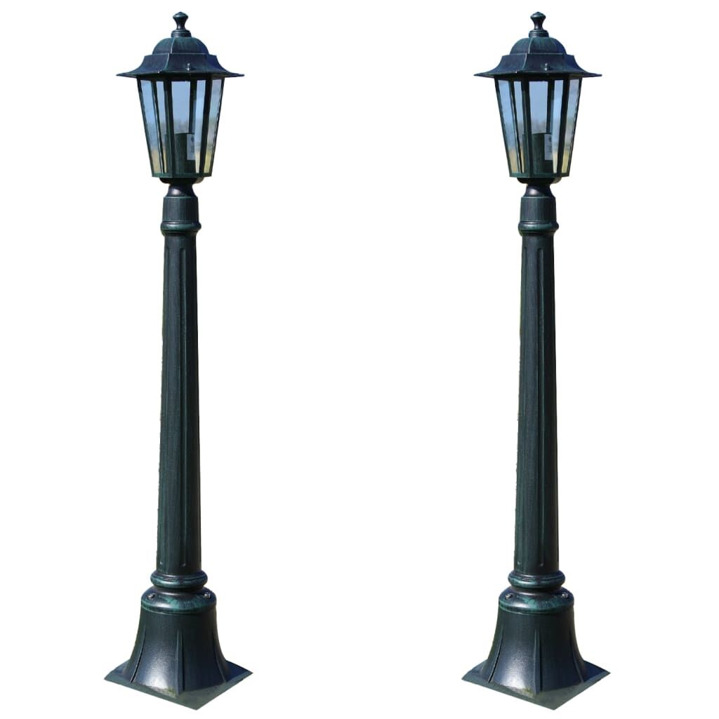 This set of 2 dark green garden lamps are made of aluminium and clear glass. It is suitable for bulbs with a maximum power of 60 watts. It not only creates a nice atmosphere in your garden, but it also makes walking along your garden path or driveway much safer in the dark.