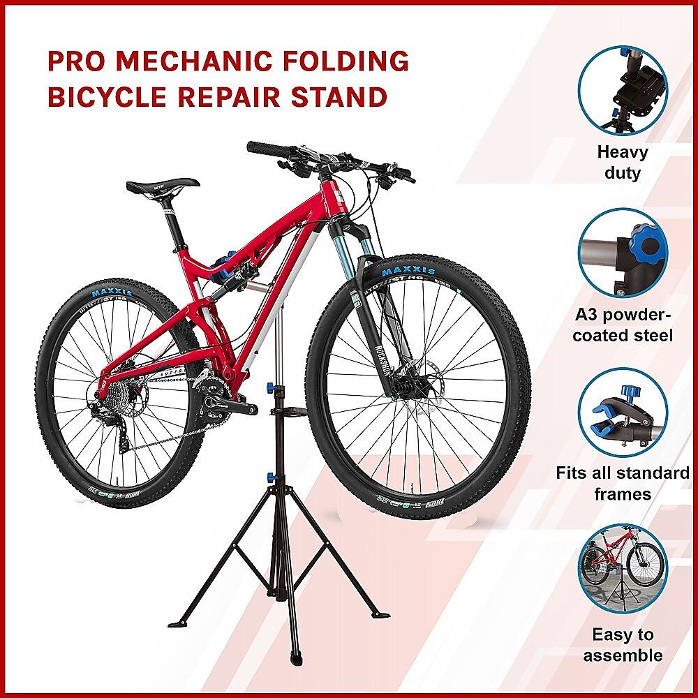 This is a must have for every bicycle owner. This bike workstand holds a maximum of 66 pounds (30kg). Your bike is held safely in place by the stand's heavy duty clamps that are designed to avoid damage to your bike's finish. The Work Horse clamps rotate 360 degrees on two axes and fit standard tube frames between 1 to 1.5.