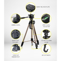 Built of durable alunimium, our sturdy Camera (and camcorder too) Tripod features a host of desirable shutterbug requirements such as 3-way fluid panhead, centre column hook for extra stability, quick release plate and secured clip and not least, bubble and spirit level.