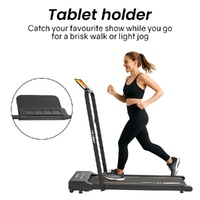 Entertainment is easy with the tablet holder, and when youre done, the slim frame stores effortlessly under a bed, sofa, or desk. With a sturdy steel build and 100 x 36cm running surface, it offers stability and comfort in a space-smart package.