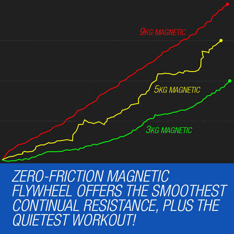 The build quality is second to none within its class. The thick steel frame is powder coated and rustproof. The EXB1 takes up less than a square metre of floor space and stands on rubber feet to protect flooring, and of course features the most superior technology available: Magnetic resistance. With a heavy-duty magnetic flywheel there is absolutely no friction in the drivetrain, which not only means zero wear and tear, but you'll also experience the smoothest, continual resistance for a low impact workout. It also ensure you'll have the quietest workout, which is great for when you'll wheel it out to enjoy your favourite TV show!