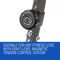The EXB1 is easily adjusted to suit multiple users. The seat and backrest are cushioned and have large surfaces to accommodate most people. Feet stay secured with grippy pedals and adjustable toe straps. The seat slides forward and back to account for user height. The eight step resistance is great for beginners or athletes, warm-up or intense exercise.