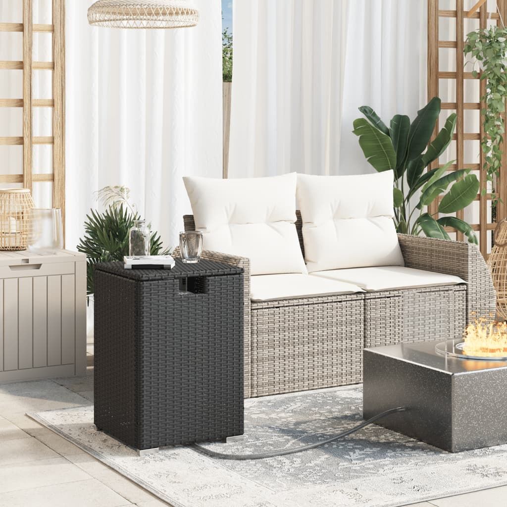 Make a neater outside space with this propane tank cover table! Durable material: PE rattan, also known as poly rattan, is a strong, low-maintenance synthetic material that looks like natural rattan. It's lightweight, easy to clean, and commonly used for outdoor furniture due to its durability and weather-resistant properties.Hideaway storage: This propane tank hideaway table is designed to conceal standard 9 kg propane tanks, enhancing the look of your outdoor spaces while ensuring child safety.Convenient access: The hinged lid and hose opening provide easy access to your gas tank.Versatile functionality: This outdoor furniture serves a dual purpose as a propane tank cover and a convenient side table for keeping daily items within easy reach.Robust and stable frame: The powder-coated steel frame ensures that the garden furniture is strong and stable for daily outdoor use. Good to know:To make sure your outdoor furniture stays beautiful, we recommend protecting it with a waterproof cover.