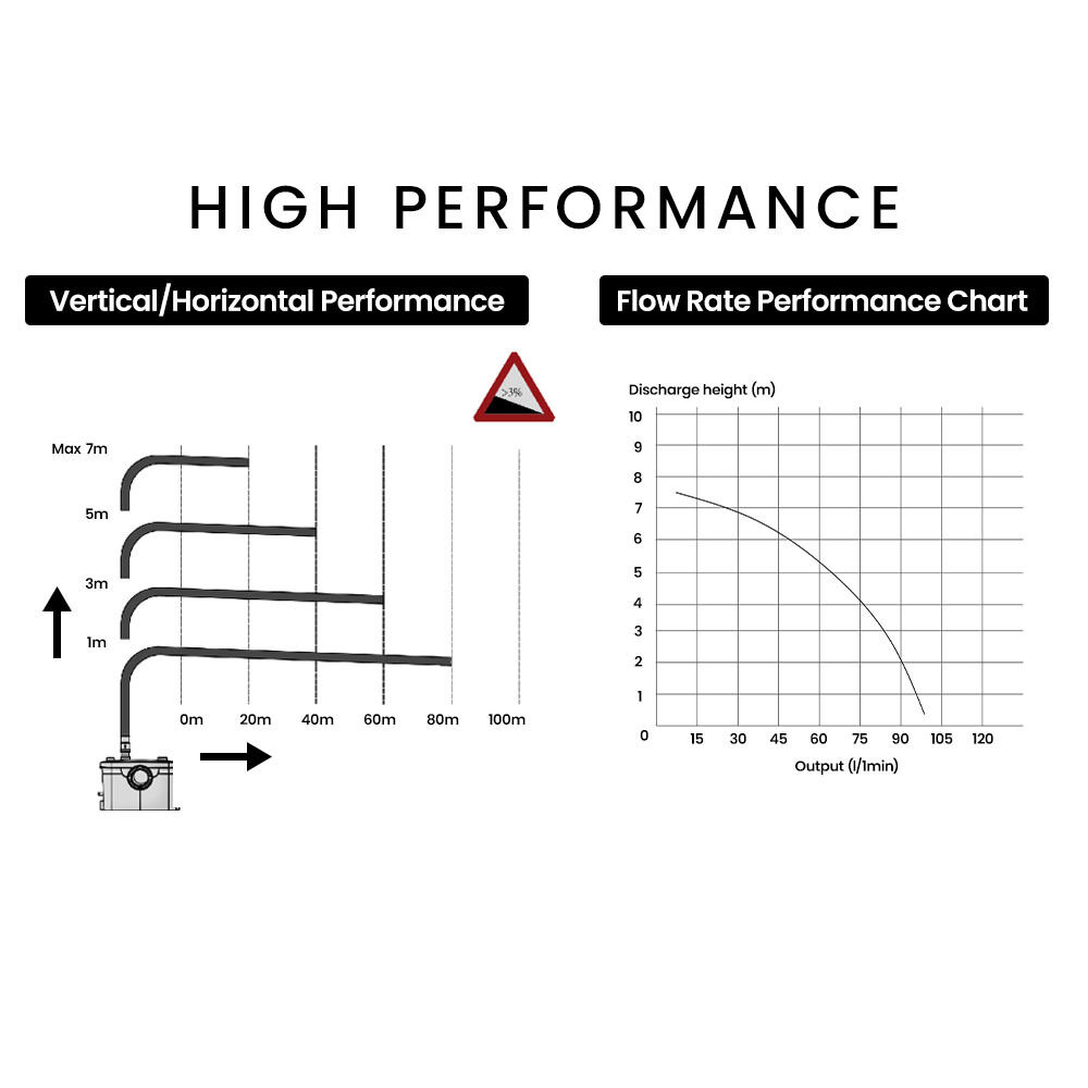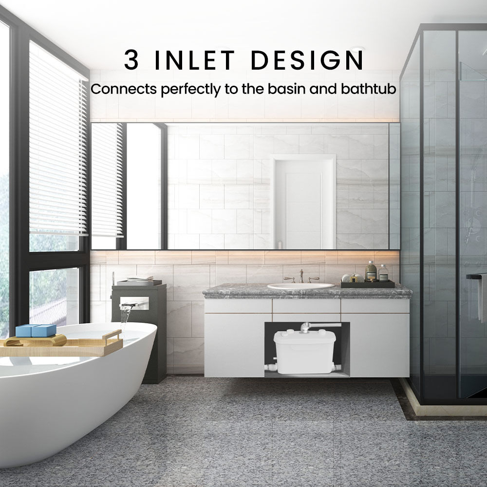 This pump can be conveniently fitted next to a shower tray, under a sink or beside a tub making it the ideal choice to overcome gravity drainage issues. It enables you to have basement showers and install new drains in any location without major plumbing work.