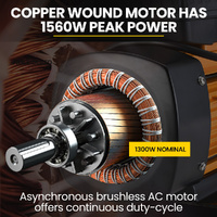 Protege pairs the pump with a 1300W (1.5 hp) pure copper wound motor with a surge maximum of 1560W (1.8 hp). Giving this efficient motor reliability and longevity is its construction. With its copper wound rotor and heavy-duty stator, the motor is mounted in aluminium with a finned heat sink chassis that keeps it running cool.