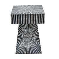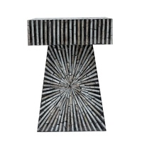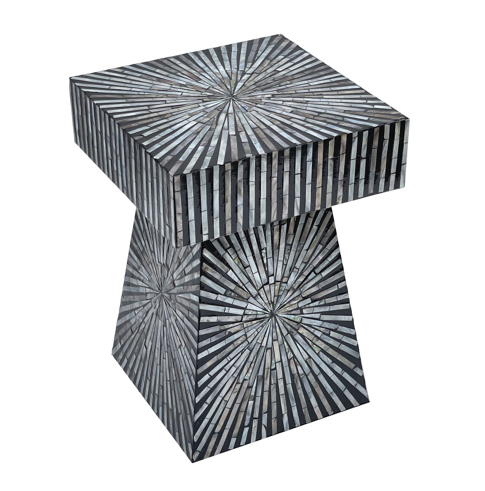 NOW $244.35PYRAMID MOTHER OF PEARL HAND MADE SIDE TABLE Add a touch of elegance to your home with our handcrafted Pyramid Mother of Pearl Side Table. The intricate design and luxurious material bring a sense of sophistication and style to any room. You'll love the way it catches the light and adds a touch of natural beauty to your living space. Whether you're using it as a statement piece or a functional addition, our side table is sure to impress and elevate any home decor. Experience the quality and craftsmanship for yourself and transform your living space with our Pyramid Mother of Pearl Side Table!