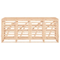 This wooden quadruple wheelie bin storage keeps the waste bin in your garden out of your sight and creates a beautiful and clean environment. Solid pine wood: The outdoor bin storage is made of solid pine wood for sturdiness and durability. Solid pine wood is a beautiful natural material. Pinewood has a straight grain, and the knots give the material its signature, rustic look.Easy to use: The door and lid make it simple to put trash in and take it out. Also, the garden bin store has latches on the front to keep the doors closed tightly.Ventilation design: Made of wooden slats, the garden bin storage allows air to flow through, stopping bad smells in the bin.Extendable design: You can enlarge your bin shed to accommodate more bins by adding extra extensions. It's available for separate purchase at the store.Flexible door installation: The doors of the wheelie bin shed can be installed on the left or right according to your personal habits and convenience.