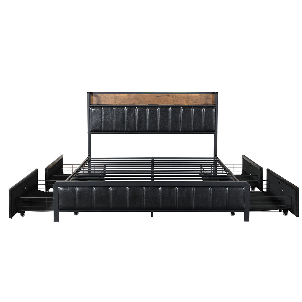 Set up your queen bed frame. Plug the power cord in. Two power points and two USB plugs. What shall you do? Hook up a reading lamp? Charge your phone? The sky’s the limit.