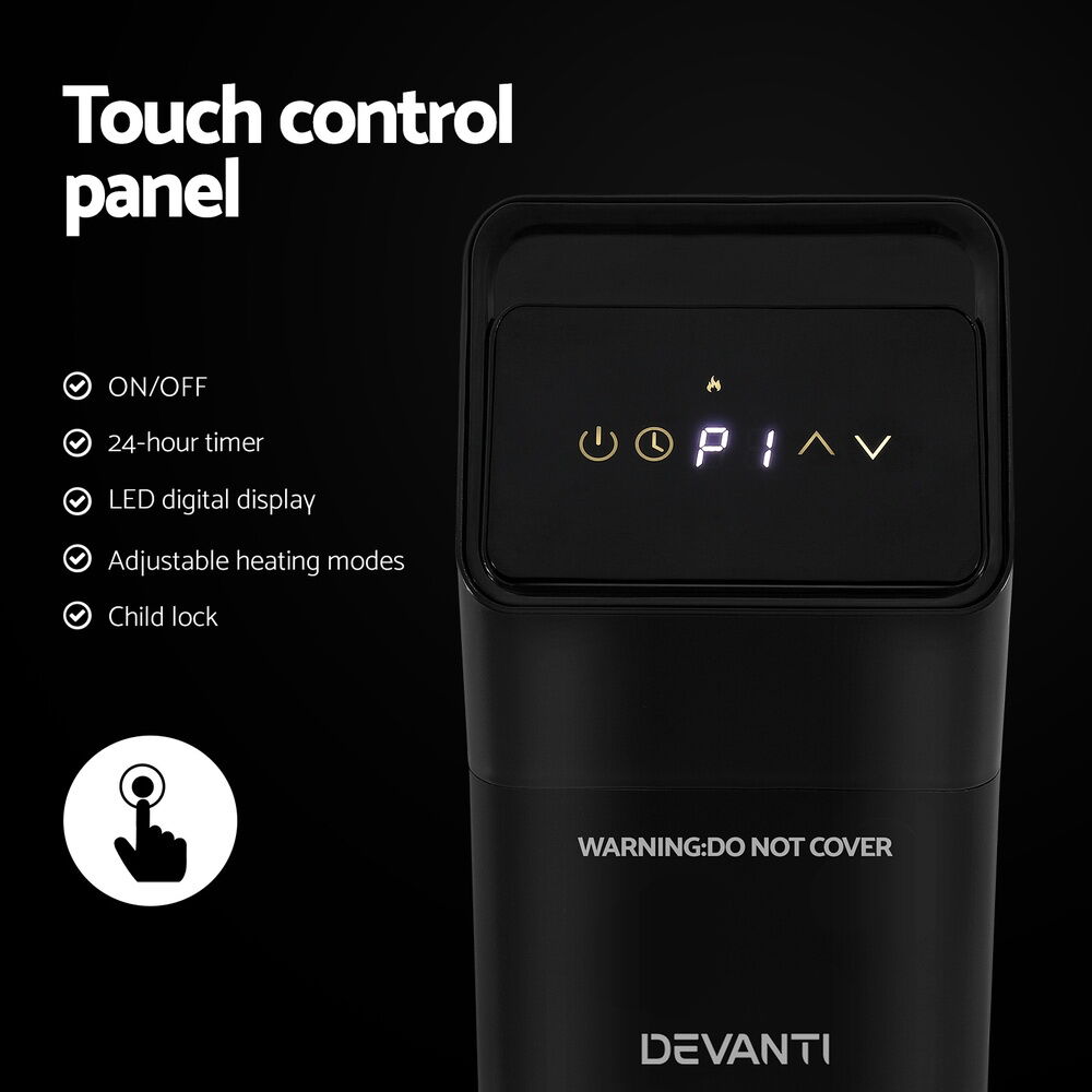 $113.73Need a little extra heating to get through winter? The Devanti Radiant Tower Heater is here to solve your winter blues. With its high-quality heating system, the heater will keep you warm throughout cold days and nights. It has three heat settings so you're always at the perfect temperature. Easily control the heater with the top touch control panel and view your settings with the LED display, or use the remote control to warm up from anywhere. Use the 24-hour timer with auto shut-off to strategically heat your home and save energy. The IP24 water-resistant rating means the tower is safe for both indoor and outdoor use. Best of all, the heater has built-in safety features such as an anti-scald protective mesh, a safety cut-off switch in case of tipping and overheating protection. For maximum comfort and warmth through the winter months, you can't go wrong with a Devanti Radiant Tower Heater.