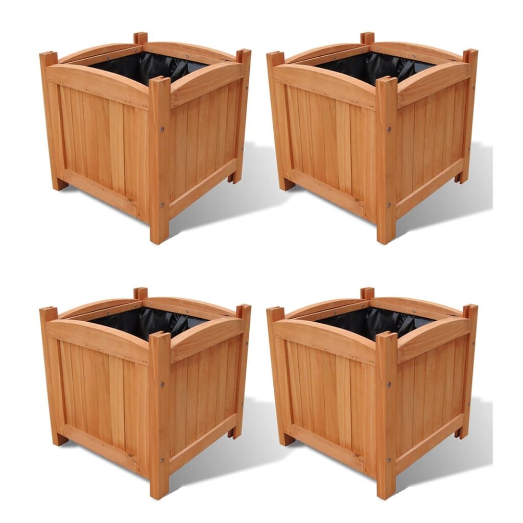 This set of 4 beautiful raised beds will be an eye-catcher in your garden, or on your terrace or patio. All kinds of plants and flowers can be placed in them. The planters are made of weather-resistant solid wood, which is durable enough to be used outdoors year round. The PE lining keeps in the soil and retains the moisture. Delivery includes 4 wooden planters.