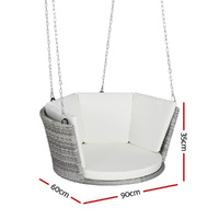$22.55Rest and relax outdoors this season with a Gardeon Single Swing Chair. The contemporary design suits all kinds of backyards, so you can swing through any season. The chair features a strong powder-coated steel frame, heavy-duty chains, and a woven wicker seat for comfort and support. The cushions are luxuriously thick and cosy, and can be removed for added ventilation and comfort during warmer weather. The cushion covers can be removed to make cleaning easy. Suitable for both indoor and outdoor use, youll be able to relax anywhere. Swing on gentle breezes and enjoy fun and relaxation on the delightful Gardeon Single Swing Chair.