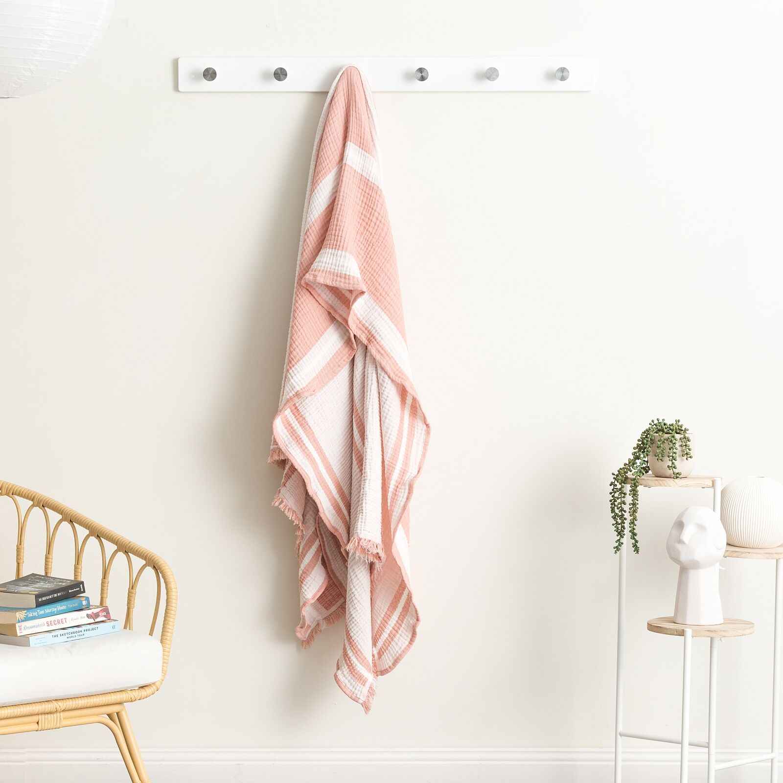 Ray Striped vintage washed throw has a delicate construction of a cotton muslin material that is airy and comfortable. The contemporary horizontal stripe patterned gives an instant stylish modern look to your favourite space. This throw has a fringe with a ragged edge on 2 sides. Each colour option has an ecru or white reverse that complements the modern contemporary look. It is breezy, simple to care for, and the ideal throw blanket for spring and summer. Proudly made in Green. All our packaging is biodegradable & environment friendly.