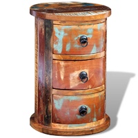 This antique-style wooden round cabinet, coming complete with 3 drawers, brings large storage space and will surely help you to maintain your items in great order. You can also put some nice vases or decorations on the smooth top surface. And with iron knobs and ring-pulls, the drawers are very easy to pull out. This storage cabinet is made from reclaimed wood, which means that every piece of furniture is unique and slightly different from each other. The furniture made from reclaimed wood has characteristics of different woods like teakwood, acacia, mango wood, saal wood etc. Reclaimed wood is solid, stable, durable, and beautiful. The nail holes or clear-faced grains bring their history with them and invite another generation to permeate them with their own. Keeping this piece of furniture at home will show your concept of resource conservation, environment protection and sustainable development. Pure handmade craftsmanship adds the vintage spectacular style to the cabinet and feasts you with exotic flavour. Every process of recombining, polishing, painting and waxing is elaborately prepared. The antique cabinet will surely be a perfect addition to your home! Important note: Colours vary from piece to piece, making each of our cabinets unique. The delivery is random, ensuring the exclusivity and individuality of your product.
