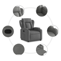 Sit back and drift away in this highly comfortable recliner chair! Manual reclining function: This reclining chair has a button on the right side. You can manually adjust the footrest and the backrest to any position as per your comfort with a simple pull of the handle. This feature allows for a maximum tilt of 135 degrees. Additionally, the backrest can go quickly back to the original place with an easy pull of the handle.Comfortable seat experience: The thickly padded seat, backrest, and wide armrests covered in fabric provide a cosy and warm sensation, making you feel embraced while seated. The fabric features a simple and clean look and is breathable and durable.Convenient cup holders and side pocket: This armchair has two convenient cup holders for your drinks and a side pocket for you to keep your essential items within easy reach.Solid and stable frame: The frame made of wood and metal provides a strong structure and stability. This reclining armchair is comfortable and durable.