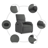 Sit back and drift away in this highly comfortable recliner chair! Manual reclining function: This reclining chair has a handle on the right side. You can manually adjust the footrest and the backrest to any position as per your comfort with a simple pull of the handle. This feature allows for a maximum tilt of 135 degrees. Additionally, the backrest can go quickly back to the original place with an easy pull of the handle.Comfortable seat experience: The thickly padded seat, backrest, and wide armrests covered in fabric provide a cosy and warm sensation, making you feel embraced while seated. The fabric features a simple and clean look and is breathable and durable.Convenient side pocket: This armchair has a side pocket for you to keep your essential items within easy reach.Solid and stable frame: The frame made of wood and metal provides a strong structure and stability. This reclining armchair is comfortable and durable.