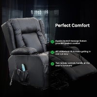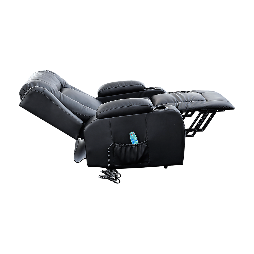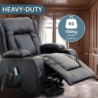 $911.79Want perfect comfort awaiting you when you come home from work? Put this heated massage lift recliner in your living room or rumpus room, and you won't ever want to leave. Beautifully crafted from PU leather, this Palermo recliner's contemporary lines will look great in any room, while its neutral black blends in perfectly with practically any colour scheme. An electric motor allows you to recline it to a full 165 degrees or tilt it forward 45 degrees to allow you easy access. Two remotes control the heat, massage, and tilt functions to provide you with instant relaxation. It's the ideal choice for people with back or shoulder pain and for people who just want the ultimate in cosiness at the end of a long, hard day.