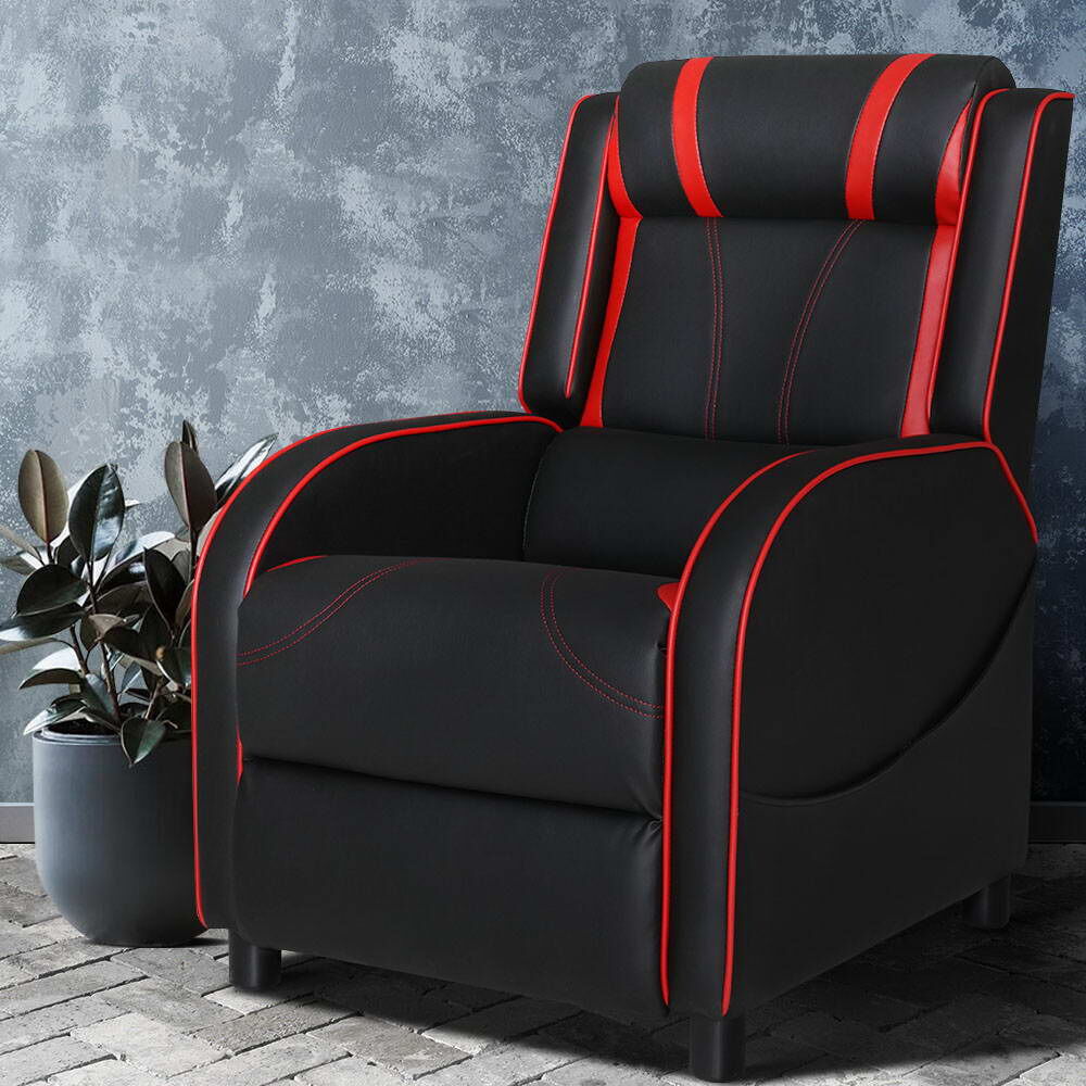 $233.11Enjoy gaming in cinema-style comfort with our Artiss Gaming Recliner Chair. Richly padded in high-resilience foam and upholstered in sporty black and red PU leather, the chair certainly looks and feels like it belongs in gold class. In the upright position, the recliner is a comfortable armchair. Or you can easily adjust the backrest and footrest to recline to your preferred angle. The backrest is wide and spacious with cushioned lumbar support and headrest to allow for full head and back support so that no matter the tilt, you have total-body comfort. Being larger and softer than the more common racer-style gaming chairs, the gaming recliner chair is much more suited to longer gaming sessions. And we all know how fast time flies when playing games. So, complete your home gaming arena with our gaming recliner chair for the perfect gaming experience.