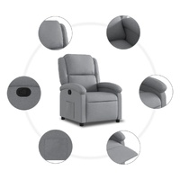 Sit back and drift away in this highly comfortable recliner chair! Manual reclining function: This reclining chair has a handle on the right side. You can manually adjust the footrest and the backrest to any position as per your comfort with a simple pull of the handle. This feature allows for a maximum tilt of 135 degrees. Additionally, the backrest can go quickly back to the original place with an easy pull of the handle.Comfortable seat experience: The thickly padded seat, backrest, and wide armrests covered in fabric provide a cosy and warm sensation, making you feel embraced while seated. The fabric features a simple and clean look and is breathable and durable.Convenient side pocket: This armchair has a side pocket for you to keep your essential items within easy reach.Solid and stable frame: The frame made of wood and metal provides a strong structure and stability. This reclining armchair is comfortable and durable.