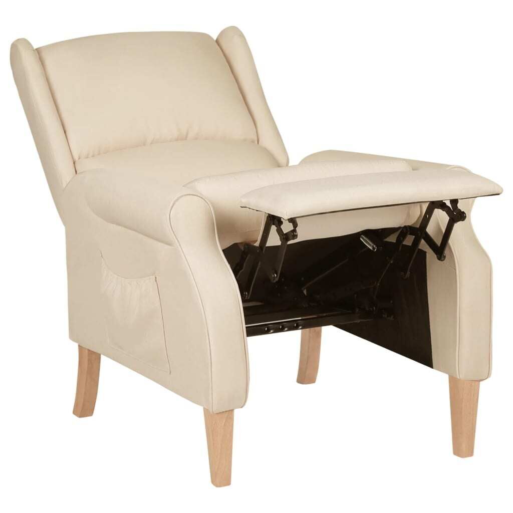 This reclining chair is a perfect choice and makes an excellent addition to your living space. The recliner is made of fabric and supported by wooden feet, making it strong and soft to be seated. The backrest is adjustable backwards and the footrest can be adjusted upwards, allowing you to lie down comfortably. Experience a wonderful relaxing time with this reclining armchair!