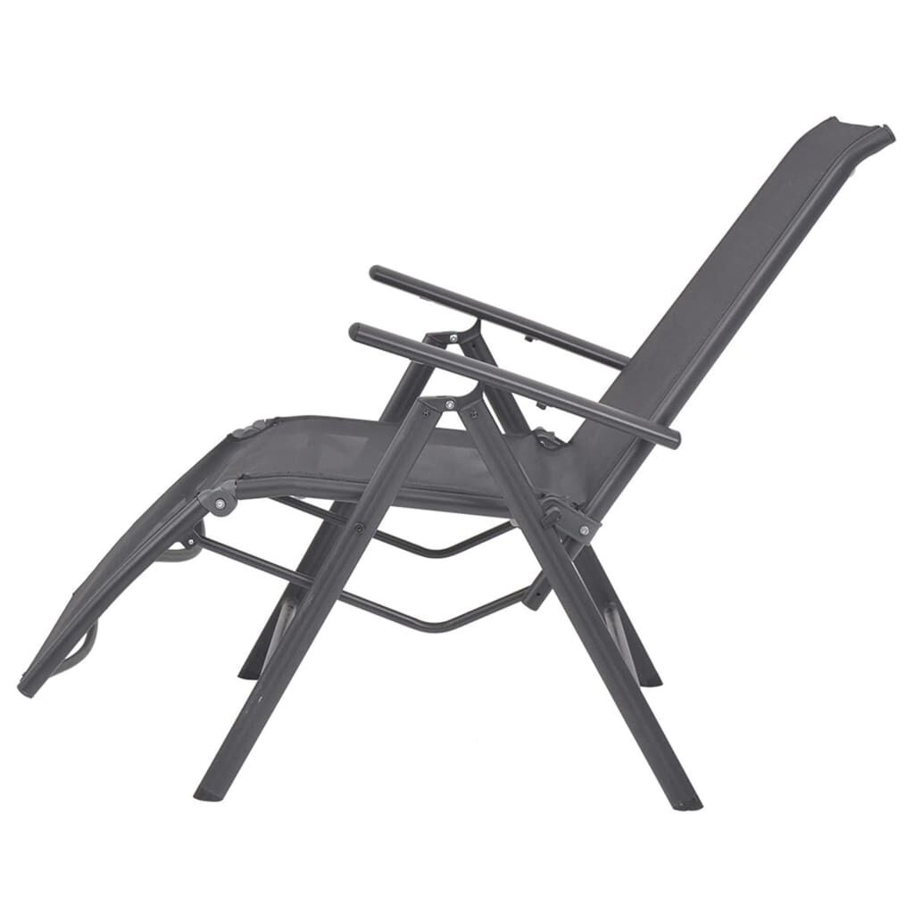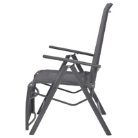 This quality reclining deck chair is a perfect combination of style and functionality. It has a 100% aluminium frame and a textilene seat and backrest and has been designed to be used outdoors year round. It will provide a comfortable place for you or your family or friend to sit while chatting, reading or relaxing. The chair's backrest is adjustable in 7 different settings, so you can always find the most comfortable position. The 100% aluminium frame is very sturdy and durable. The weather-resistant textilene makes the chair easy to clean. The armrests are made of durable wood-plastic composite, which is weatherproof and UV resistant. The seat has an additional place for foot rest which can be folded up while not in use. Since the chair is lightweight, it can be easily moved around and it is foldable to save space. Note: We recommend covering the chair in the rain, snow or frost.
