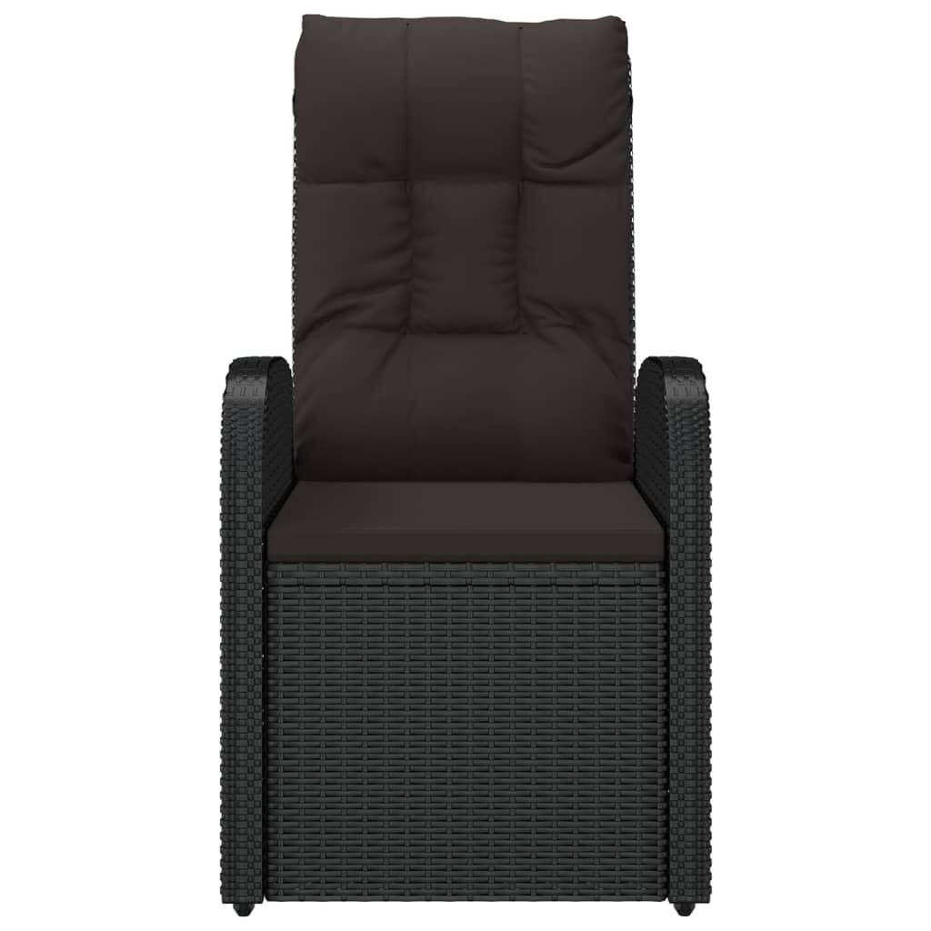 Our poly rattan armchairs will add a touch of modern elegance to your patio, balcony or garden with its understated, yet stylish design. Made of weather-resistant PE rattan, the armchairs are easy to clean, hard-wearing and suitable for daily use. The powder-coated steel frame makes the armchairs very sturdy and durable. The reclining chairs give you all the comfort needed. The backrest will recline by pulling the button on the side. Thanks to the lightweight construction, the chairs are easy to move. It is also delivered with highly comfortable, thickly-padded cushions for the ultimate comfort. Assembly is easy. Note: We recommend covering the set in the rain, snow and frost.