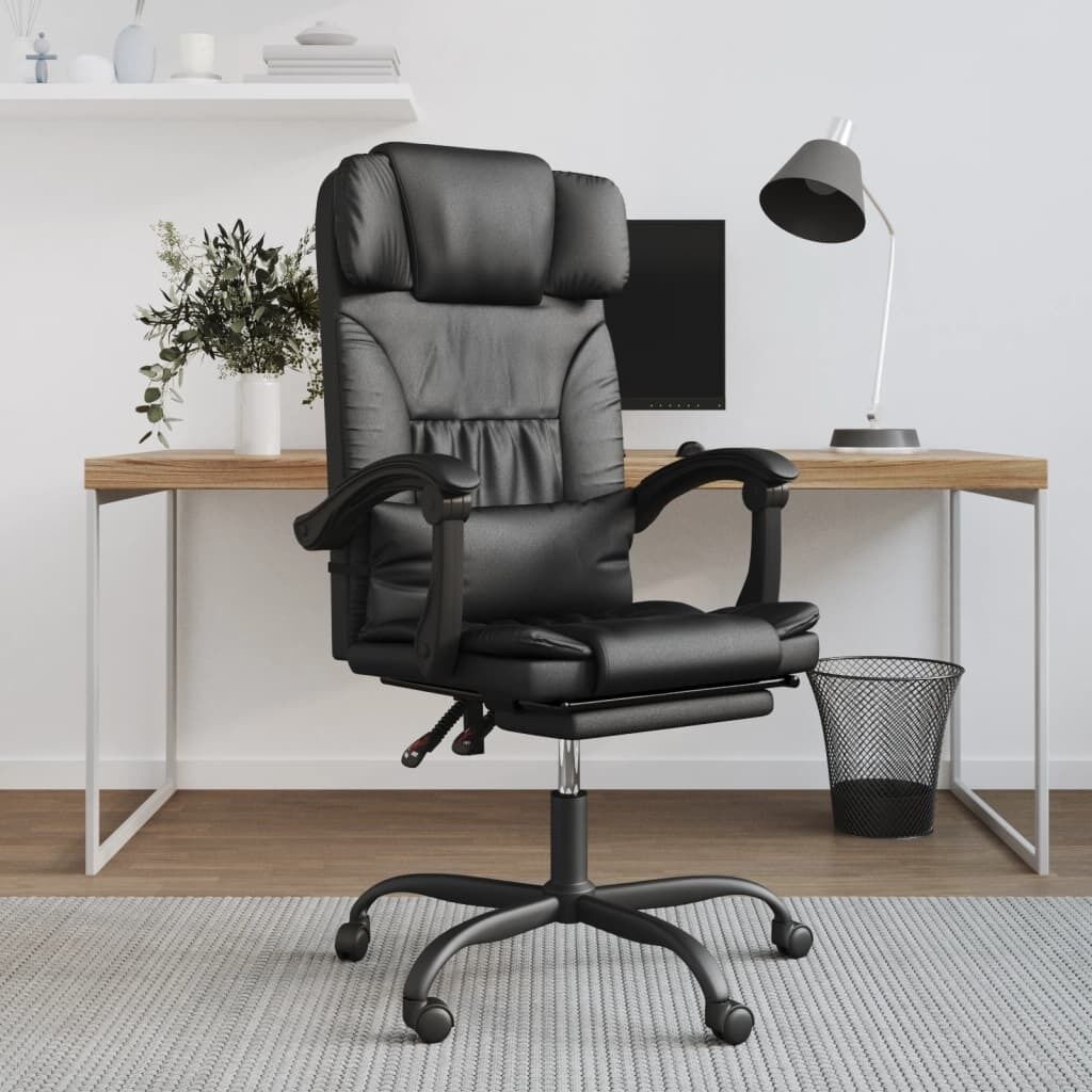 NOW $159.79Featuring a minimalistic design, this trendy reclining office chair combines elegance and comfort, making it an eye-catcher in your working space. Durable faux leather: Premium faux leather is a highly durable material. It is resistant to stain, making it easy to clean with a damp cloth. The smooth surface also gives a luxurious look and the beauty of real leather.Adjustable backrest and height: It is specially designed with a reclining function so that you can adjust the backrest and footrest as per your comfort. Use the lever to adjust the height of your seat to your liking.Convenient design: The 360 degree swivel design allows a wider range of motion. Additionally, it is convenient to move around with rolling castors.Sturdy and stable frame: The metal and plywood frames ensure sturdiness and stability. Note:Each product comes with an assembly manual in the box for easy assembly.