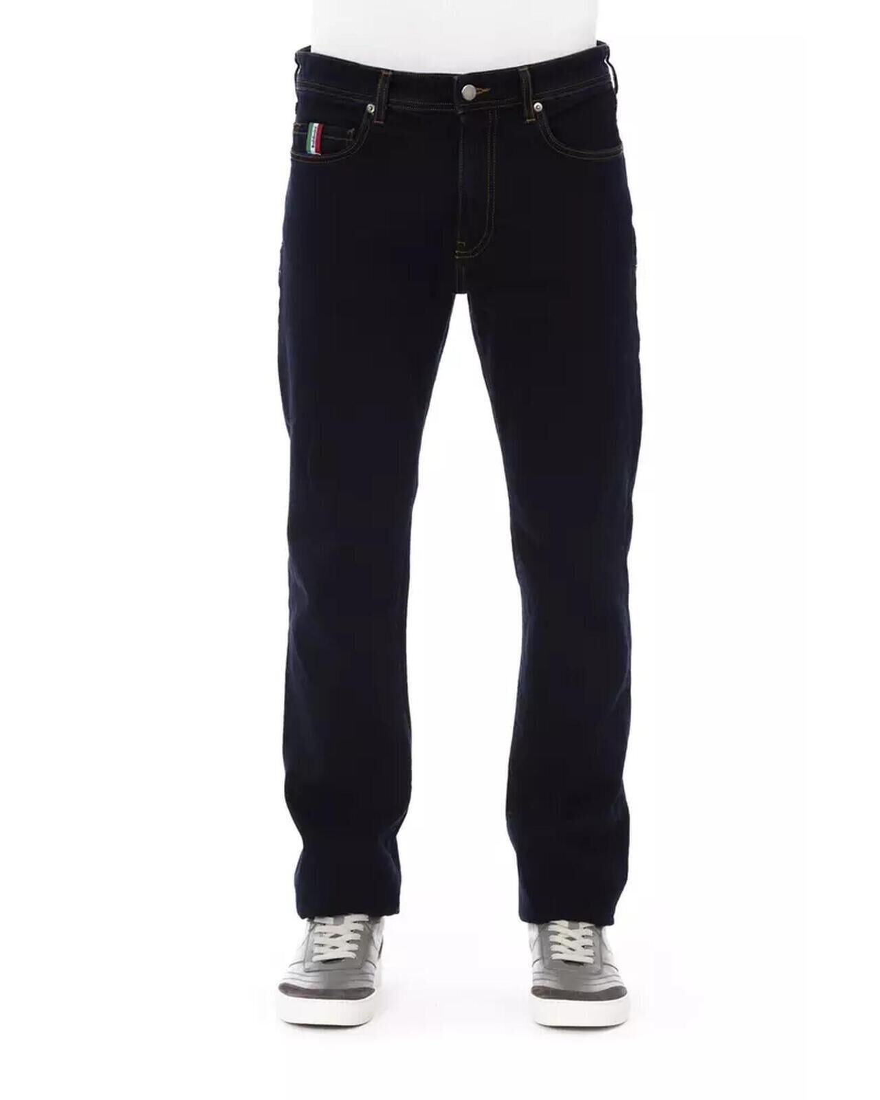 Regular Man Jeans with Logo Button and Tricolor Insert Men