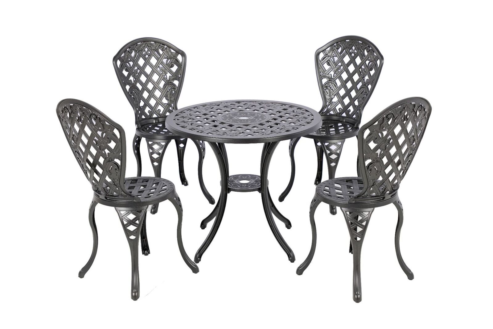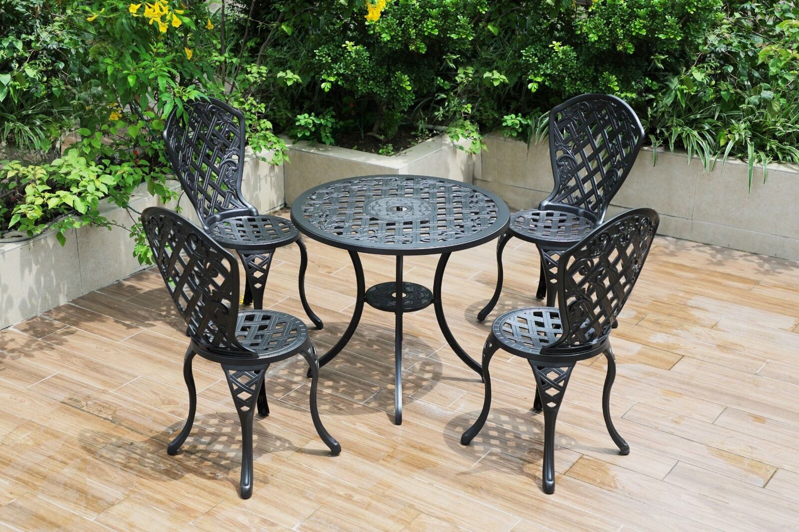 Enhance your patio, garden, or balcony with this stylish Aluminum 5-piece set. Featuring four comfortable chairs and a sleek table, this set combines contemporary design with robust construction for a perfect outdoor solution.
