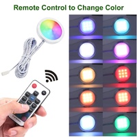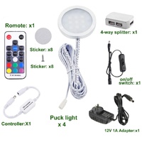 Ultra slim:4 packs of RGB LED under cabinet puck lights for colorful decorative ambiance lighting,120 degree wide beam angle, slim aluminum round shape cabinet lights.