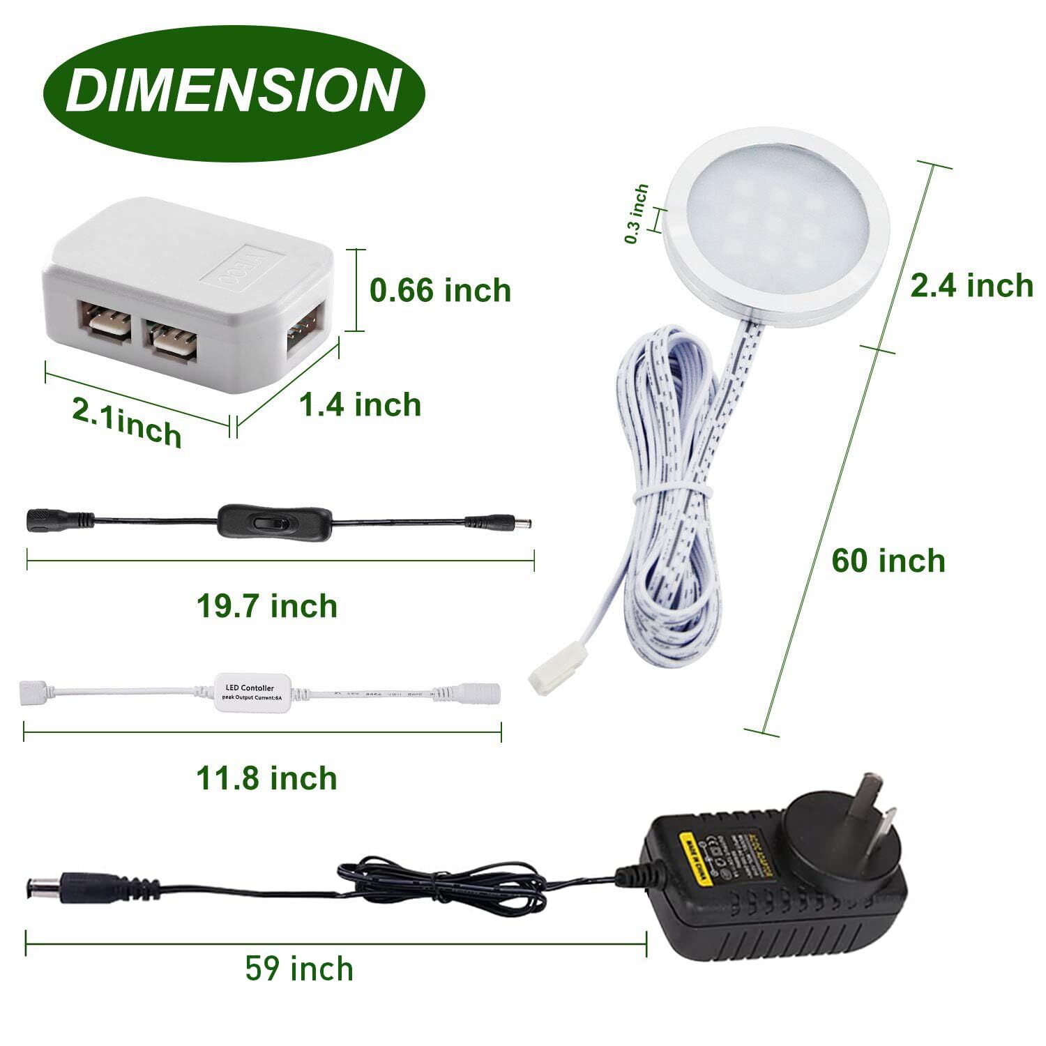 Easy install:4 RGB cabinet lights connected by a distributor box, 60 inch length of cord cable, adhesive tapes, screw-free, protect your furniture and easy to install.