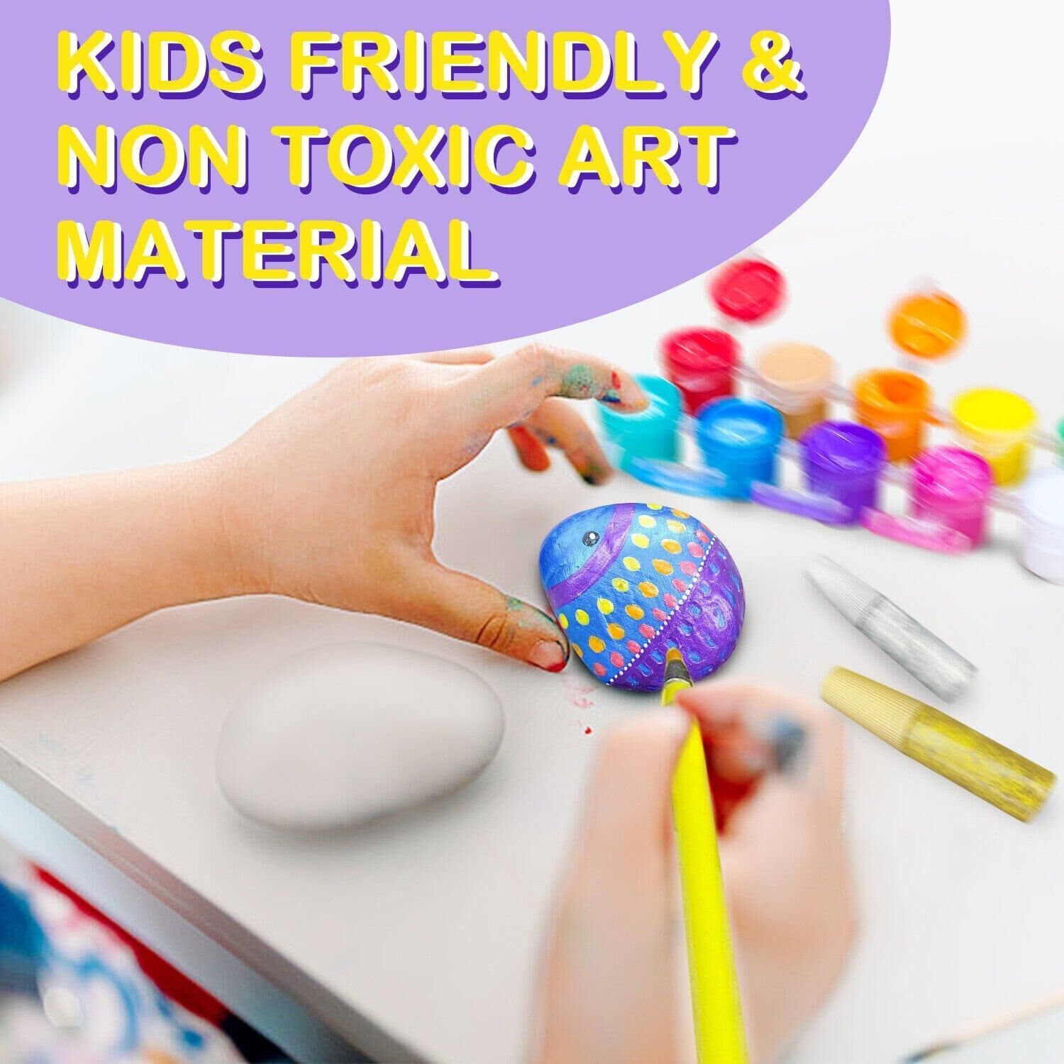 Complete with all you need including 10 rocks, paints, paintbrush, glitter glue. Children will be able to create lovely gifts to give to family or friends.