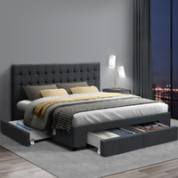 Of particular interest is the tufted headboard that really gives the Bed Frame a designer-class status. Simply oozing with elegance and sophistication in every detail. What’s more, underneath the Bed Frame, you'll find four spacious drawers to store all your seasonal beddings and linen and a host of other personal essentials. No more clutter and loads of useable storage right under you. Better still, the drawers are set on wheels for easy access sliding in and out.