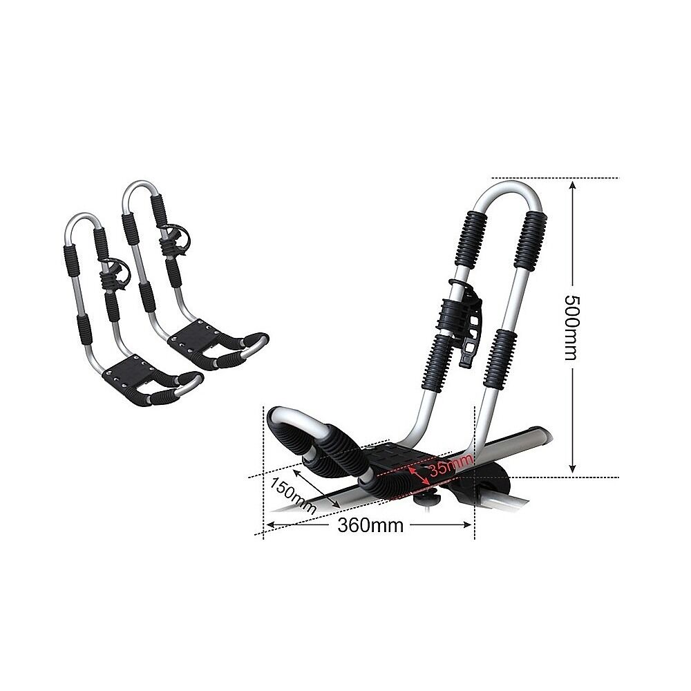This attractive silver aluminum rack will allow you to safely and easily transport your kayak or canoe on the roof of your vehicle. Our roof mount rack features a sturdy J-bar construction that is capable of toting any size kayak or canoe. Once your kayak or canoe is tied down with the racks two thirteen-foot tie down straps, you can be confident of a successful transport.