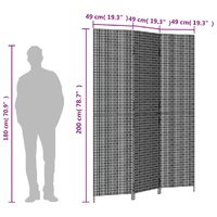 Decorate your home and divide up your space with this poly rattan room divider. Durable and easy to clean: Each privacy screen panel is woven from weather-resistant and durable poly rattan stripes, providing a beautiful appearance and making it easy to clean.Stable frame: The powder-coated steel frame ensures sturdiness and stability.Flexible and easy to fold: Each partition is connected by galvanised hinges and can be easily folded to some extent according to your needs to save space.Multipurpose: The room divider screen is great for creating private space both indoors and outdoors, such as a bedroom, living room, office, etc. You can also place it in front of a window to block intense sunlight.