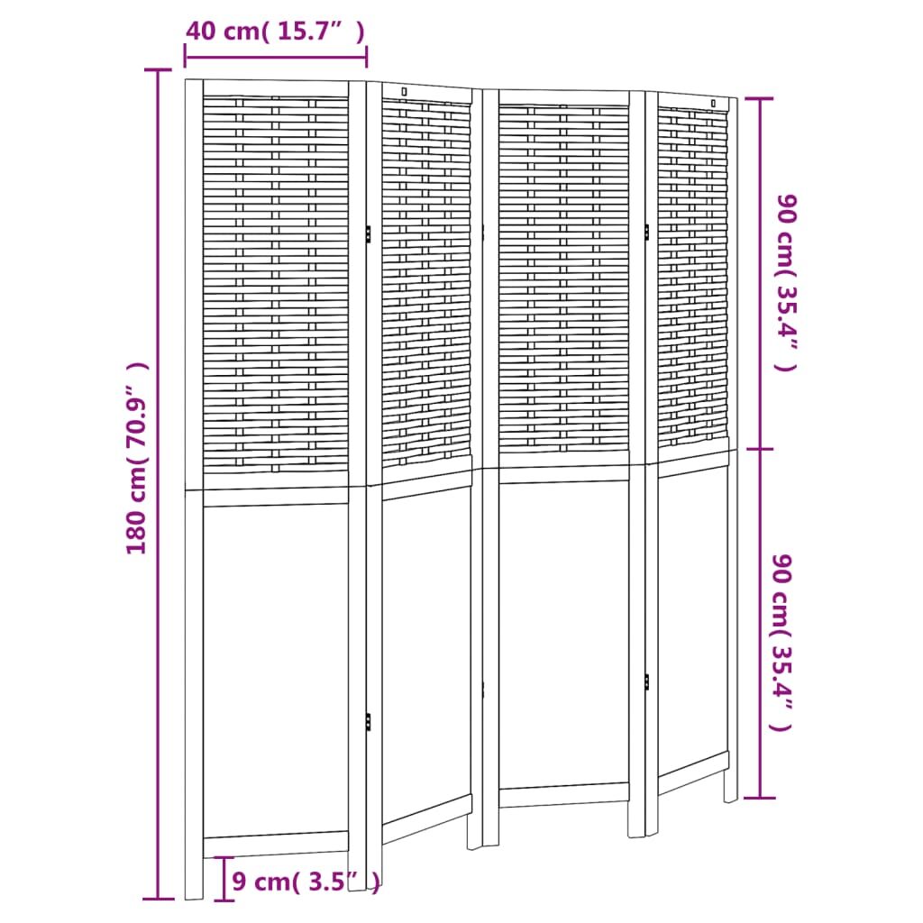 Bring elegance and an eye-catching decorative touch to your space with this charming room divider. Durable and easy to clean: The privacy screen is woven from natural bamboo strips and engineered wood, making it easy to clean and durable.Stable frame: The solid paulownia wood frame ensures sturdiness and stability. Solid paulownia wood is a beautiful natural material. Paulownia wood is highly resistant to bugs and rotting.Flexible and easy to fold: Each partition is connected by 3 metal hinges and the upper and lower panels are connected by hidden 2-in-1 hinges. So the room divider panel can be easily folded to some extent according to your needs to save space.Multipurpose: The room partition is great for creating private space in your bedroom, living room, office and other interiors. You can also place it in front of a window to block intense sunlight.Burnt looking: Featuring a burnt look, this folding room divider adds character and decoration to the space. Warning:Only for indoor use.