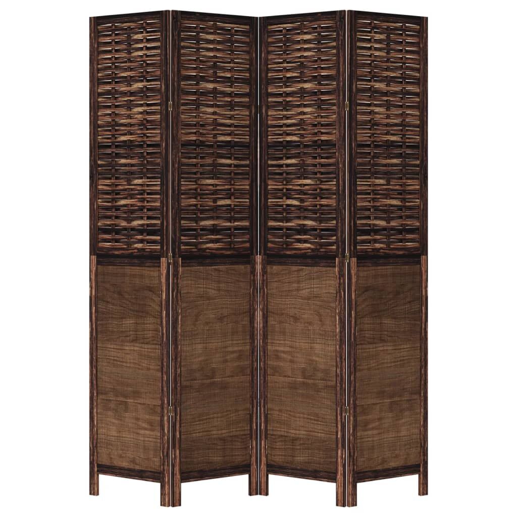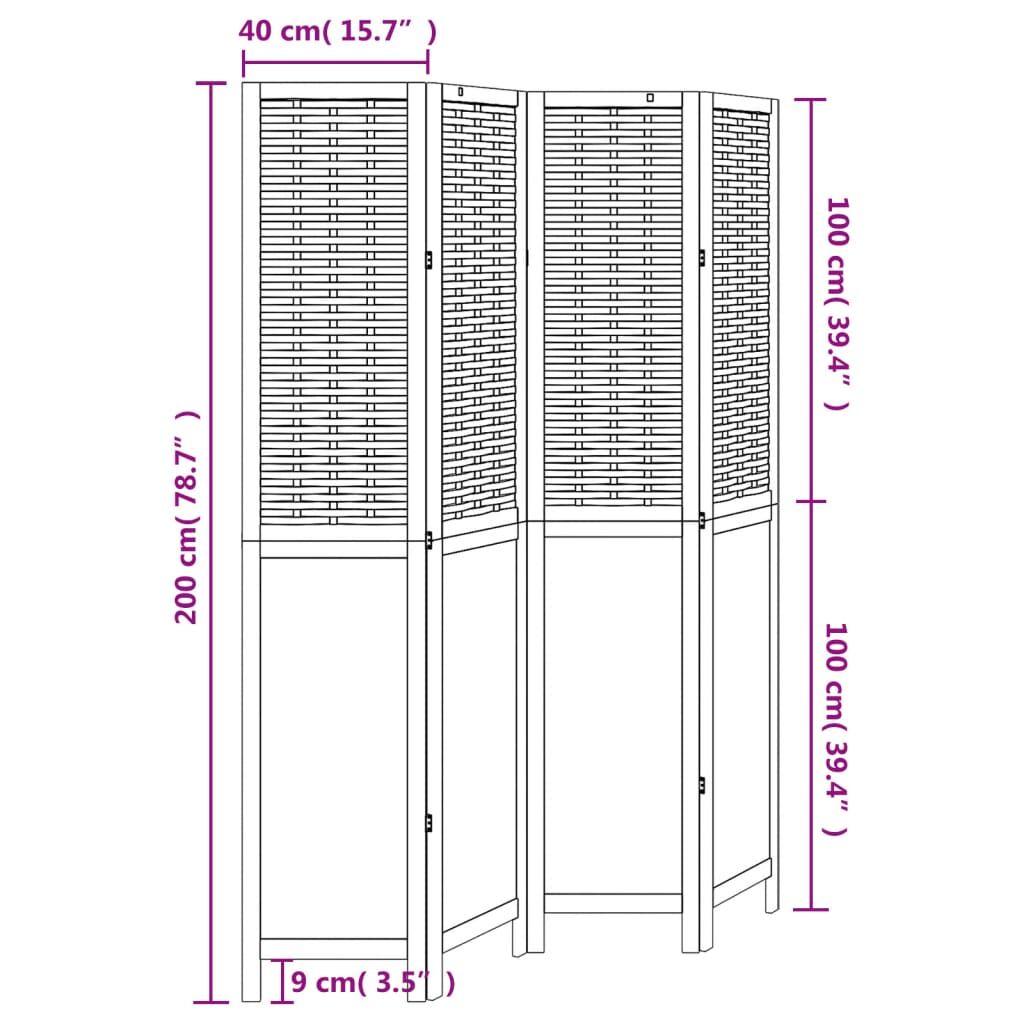 Bring elegance and an eye-catching decorative touch to your space with this charming room divider. Durable and easy to clean: The privacy screen is woven from natural bamboo strips and engineered wood, making it easy to clean and durable.Stable frame: The solid paulownia wood frame ensures sturdiness and stability. Solid paulownia wood is a beautiful natural material. Paulownia wood is highly resistant to bugs and rotting.Flexible and easy to fold: Each partition is connected by 3 metal hinges and the upper and lower panels are connected by hidden 2-in-1 hinges. So the room divider panel can be easily folded to some extent according to your needs to save space.Multipurpose: The room partition is great for creating private space in your bedroom, living room, office and other interiors. You can also place it in front of a window to block intense sunlight.Burnt looking: Featuring a burnt look, this folding room divider adds character and decoration to the space. Warning:Only for indoor use.