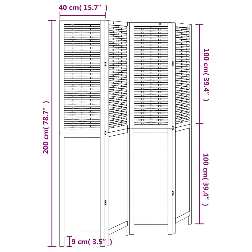 Bring elegance and an eye-catching decorative touch to your space with this charming room divider. Durable and easy to clean: The privacy screen is woven from natural bamboo strips and engineered wood, making it easy to clean and durable.Stable frame: The solid paulownia wood frame ensures sturdiness and stability. Solid paulownia wood is a beautiful natural material. Paulownia wood is highly resistant to bugs and rotting.Flexible and easy to fold: Each partition is connected by 3 metal hinges and the upper and lower panels are connected by hidden 2-in-1 hinges. So the room divider panel can be easily folded to some extent according to your needs to save space.Multipurpose: The room partition is great for creating private space in your bedroom, living room, office and other interiors. You can also place it in front of a window to block intense sunlight. Warning:Only for indoor use.