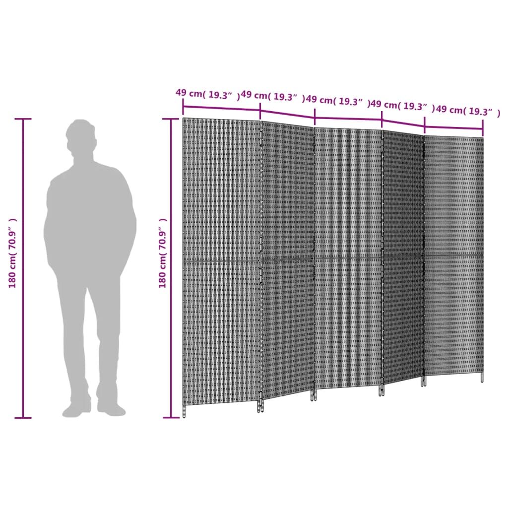 Decorate your home and divide up your space with this poly rattan room divider. Durable and easy to clean: Each privacy screen panel is woven from weather-resistant and durable poly rattan stripes, providing a beautiful appearance and making it easy to clean.Stable frame: The powder-coated steel frame ensures sturdiness and stability.Flexible and easy to fold: Each partition is connected by galvanised hinges and can be easily folded to some extent according to your needs to save space.Multipurpose: The room divider screen is great for creating private space both indoors and outdoors, such as a bedroom, living room, office, etc. You can also place it in front of a window to block intense sunlight.