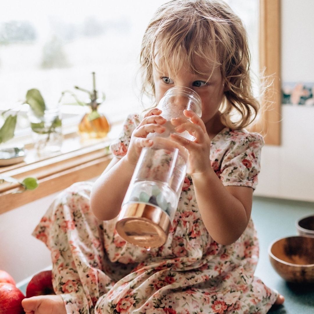 Rose Gold Crystal Bottle with Gemstone Base and Tea Infuser