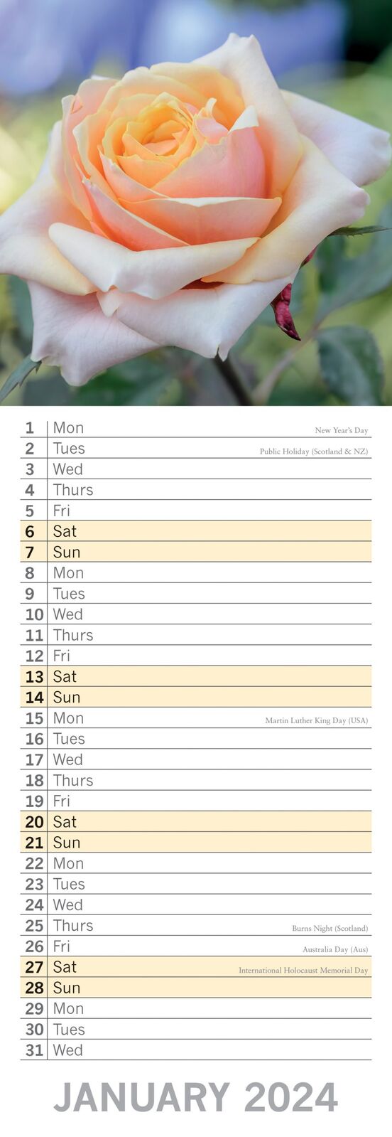 Roses - 2024 Slimline Slim Wall Calendar Hanging Planner New Year Gift