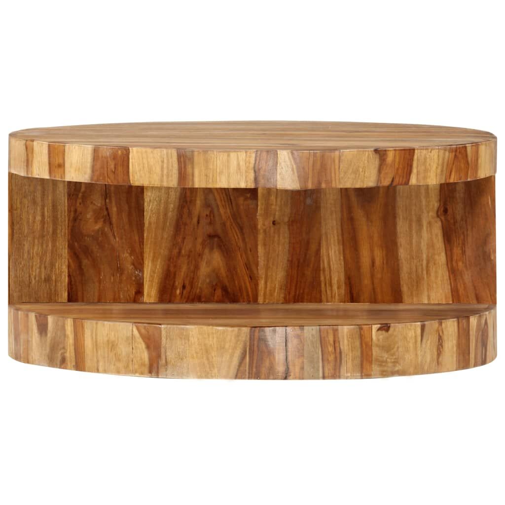 This round coffee table exudes an attractive charm. It will truly be a centrepiece of your interior. The coffee table is made of solid sheesham wood, which is also known as rosewood or palisander, is a tropical hardwood that is famous for its natural grains and smooth texture. Additionally, it doesn't warp or split, and features natural decay resistance. Therefore this wooden coffee table is exceedingly stable, durable and captivating. The table with a big bottom storage shelf which provides ample space for keeping your items neatly organised. Besides, this side table is fully handmade and the exquisite craftsmanship as well as the refined wood grains make every piece of furniture distinctive and slightly different from each other. The coffee table is easy to assemble. Important note: The wood grains vary from piece to piece, making each piece unique. The delivery is random, ensuring the exclusivity and individuality of your product.