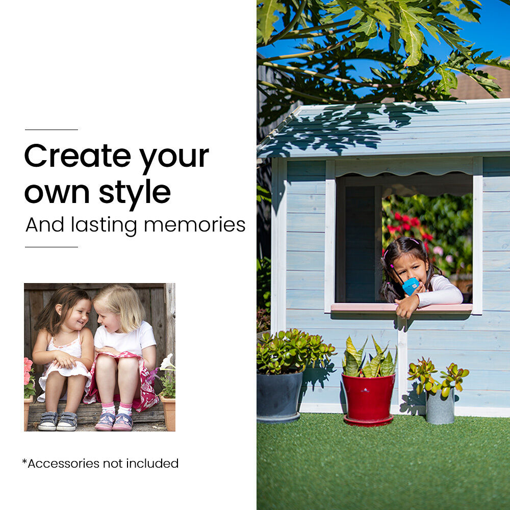 Join the global craze and truly make your mark on your Rovo Kids Cubby House - DIY style! Readily customisable, tap into your inner creativity - there are endless possibilities at your disposal! Create a dream castle for your own little royalty by painting and decorating their cubby with shades of white and gold, or create a home-business experience for your little ones serving you from their very own shop front! Mix and match your style to the season or holiday celebration; a pool house in summer or a winter wonderland log cabin complete with fairy lights. Unleash your imagination! With great design and curb appeal to start you off right, the choice is yours, and you can continue to customise your new Rovo Kids Wooden Cubby House as your child grows.