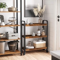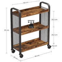Rustic Brown Kitchen Trolley Rolling Cart with Steel Structure (66 x 26 x 85 cm)